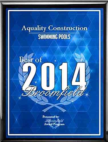 "Aquality Construction has been selected seven years in a row for the 2014 Best of Broomfield Awards for Swimming Pools and now qualifies for the Broomfield Business Hall of Fame... This is a reflection of the hard work of not only yourself, but of many people that have supported your business and contributed to the subsequent success of your organization. Congratulations on your selection to such an elite group of small businesses."