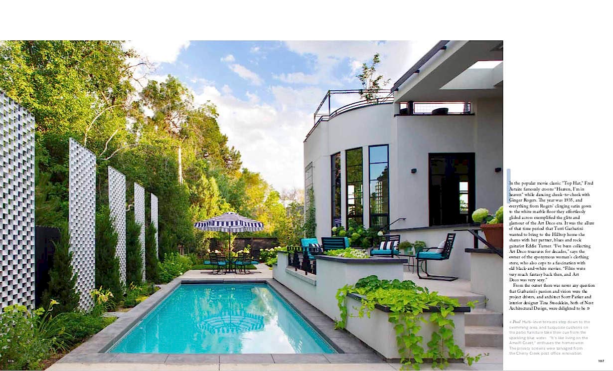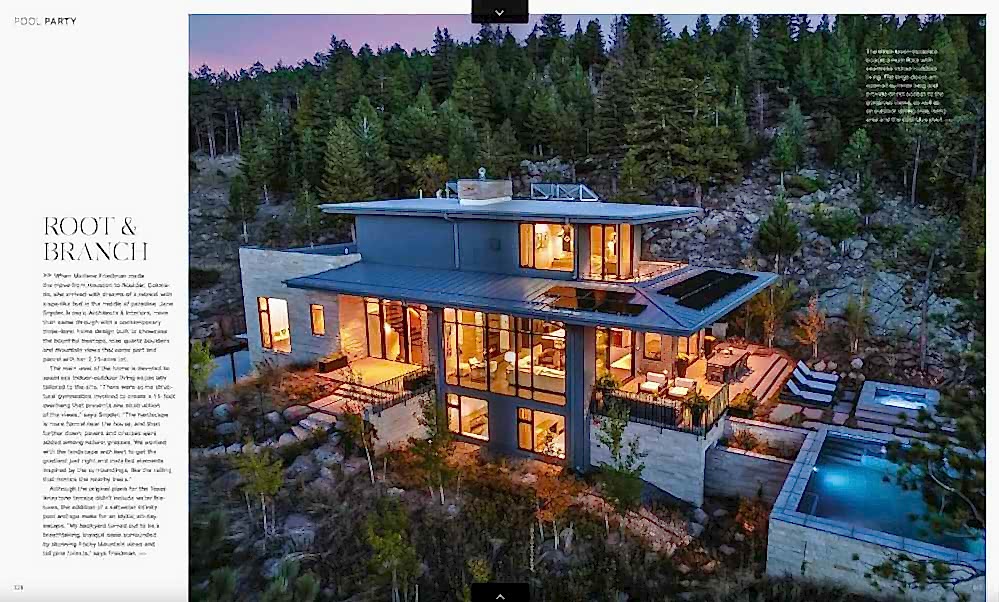 The addition of a saltwater infinity pool and spa make for an idyllic, all-day escape. “My backyard turned out to be a breathtaking, tranquil oasis surrounded by stunning Rocky Mountain views and tall pine forests,” says Friedman. Read more here